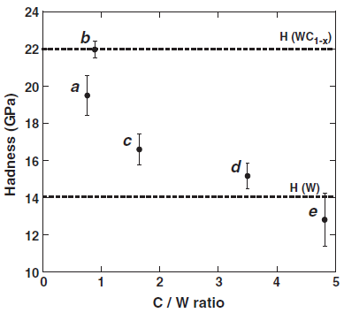 Abdelouahdi et al [34] ont trouvé que les dépôts contenants une teneur en carbone relativement faible par rapport au tungstène (figure II.12) présentent une dureté élevée. Le même résultat est trouvé par plusieurs auteurs [27,28,59,60].