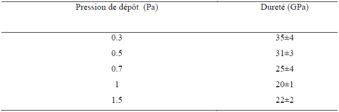 Tableau II.4. Variation de la microdureté en fonction de la pression de dépôt [37].