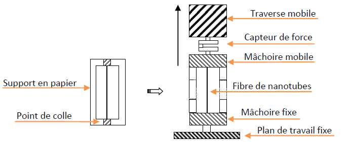 Réponse caractéristique d’une fibre de nanotubes (monoparoi) à une sollicitation mécanique en traction