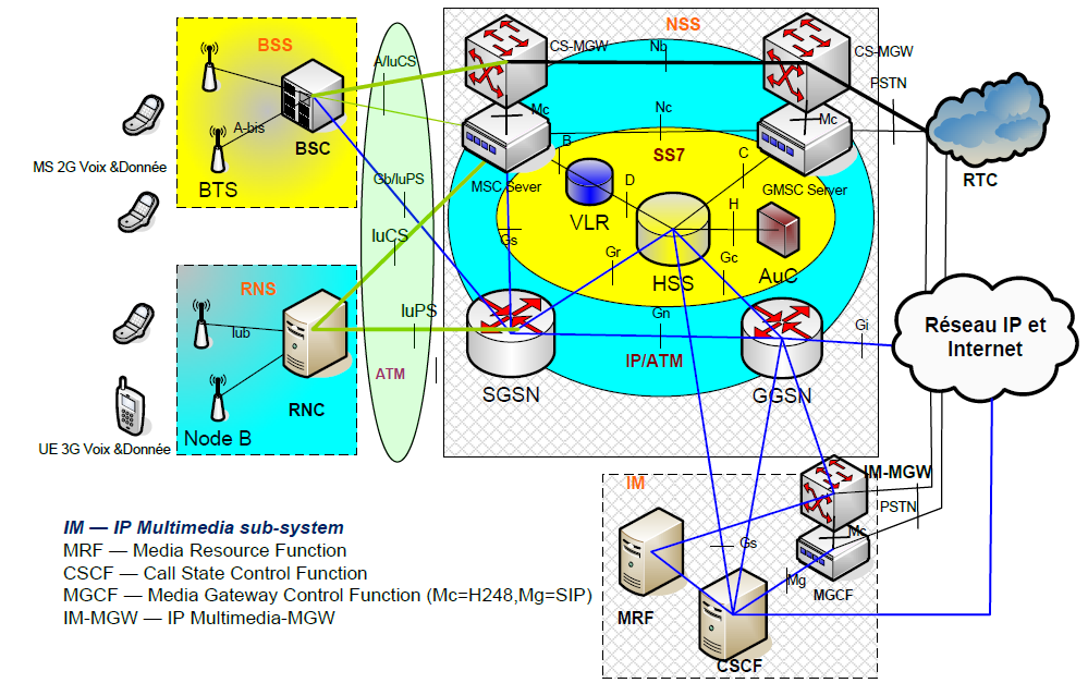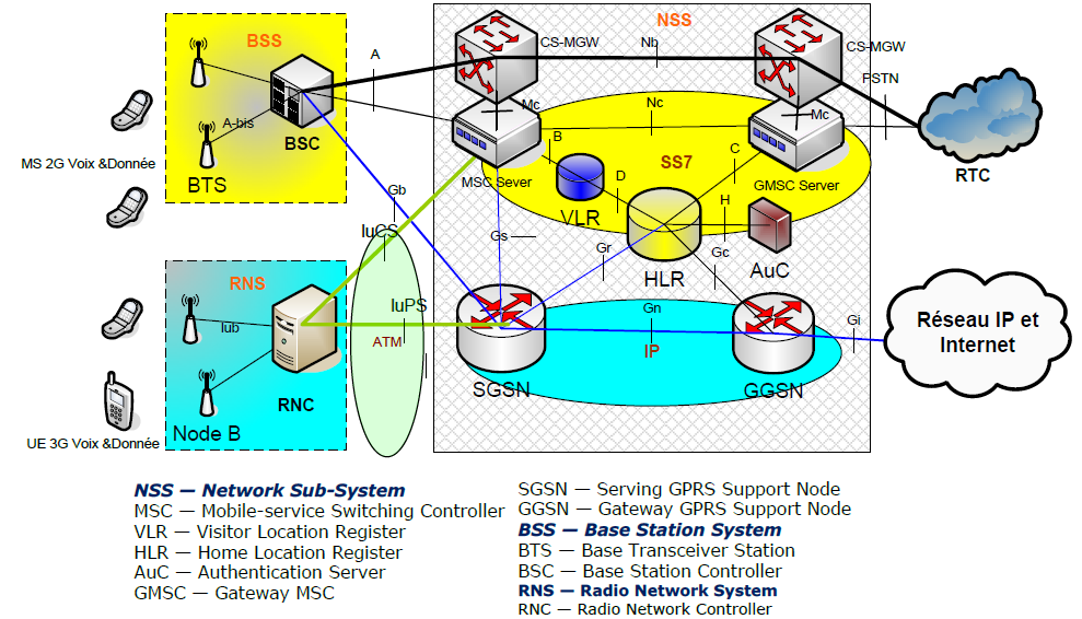 Le réseau de base UMTS R3 s’appuie sur celui du GSM/GPRS que nous allons voir son architecture.