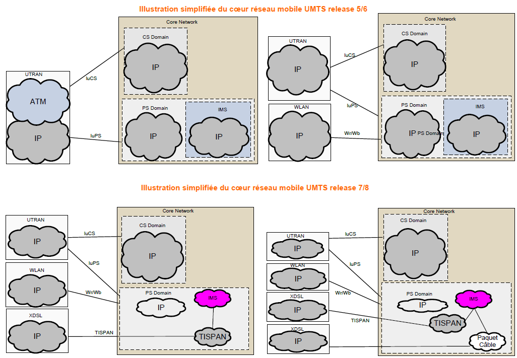 La release R4 (ex-R99) est la première étape vers un cœur de réseau tout IP, et la release R5 finalise cette évolution.