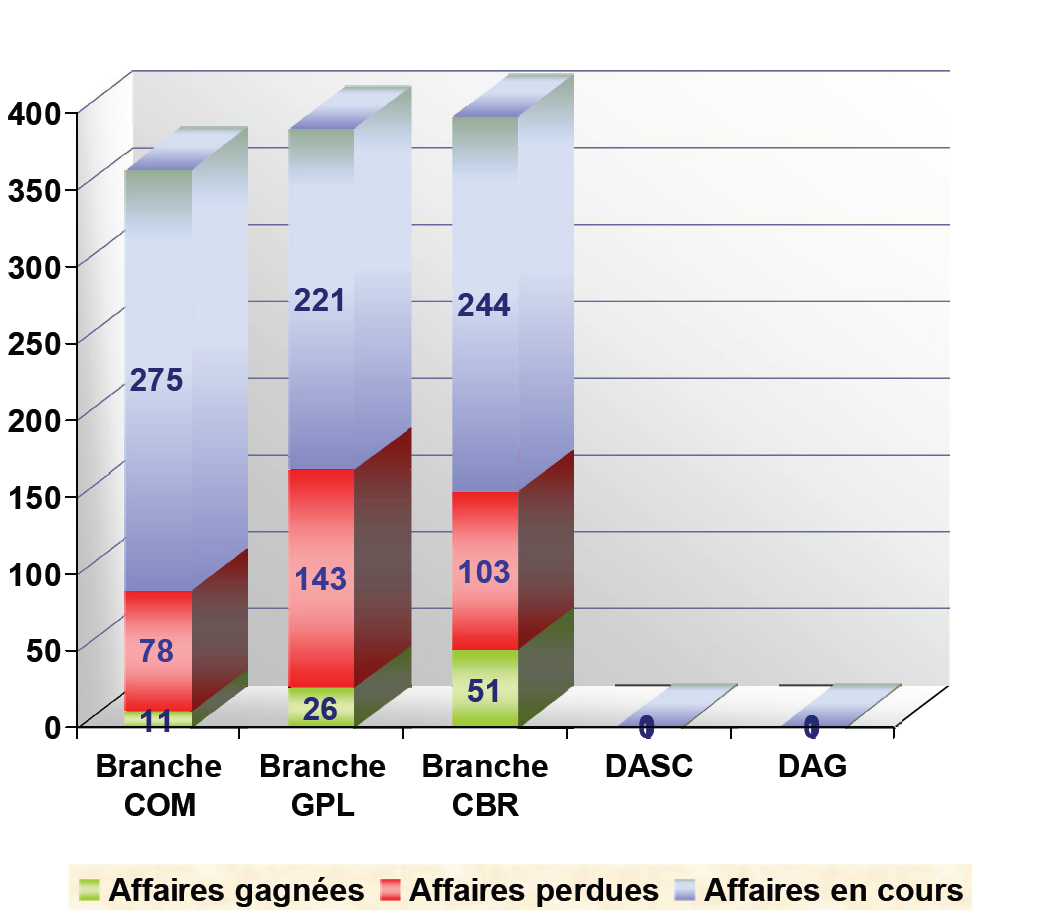 Un total de 324 perdues et 88 gagnés, ce qui fait un montant de 413 affaires classées
