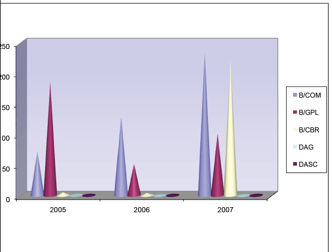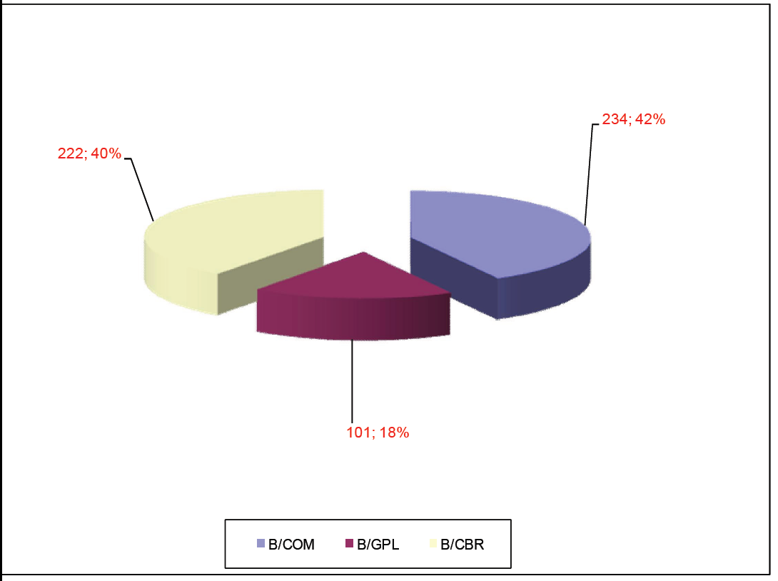 On note que la branche GPL enregistre le plus grand nombre