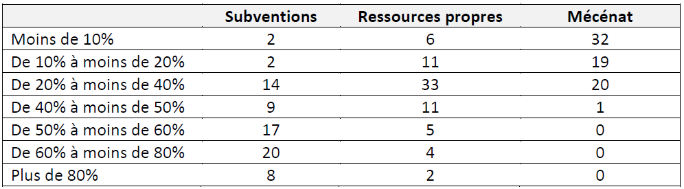 Cette brève mention de la tarification est aussi en lien avec l’économie des festivals précédemment étudiée, où nous avons pu voir combien les recettes propres étaient cruciales dans les budgets : 36,5% en moyenne.