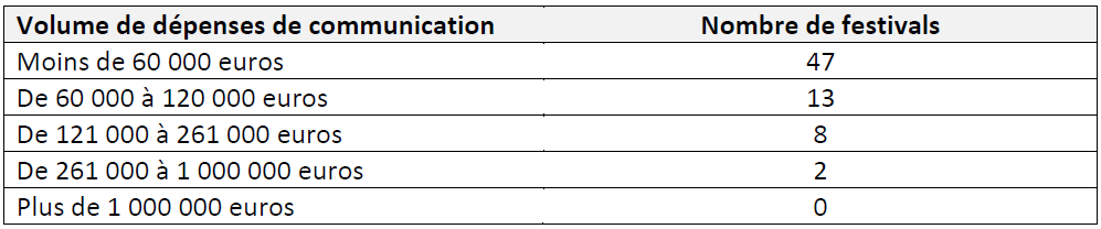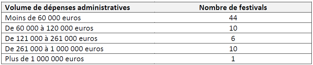 – pour 13 festivals, elle est se situe entre 40 000 et 100 000 euros ;
