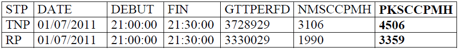 Les indicateurs inclus dans ce tableau montrent clairement les états de la couche MTP1 à MTP3 des liens de la plateforme EIR. Cet exemple permet de nous faire comprendre que le disfonctionnement sur les liens et faisceaux peut survenir dans tous les niveaux et quelques soit la présence des pannes dans un niveau donné il y a toujours une risque de perdre des MSUs. La période pour laquelle ces liens ont été observés a suffi largement de faire apparaitre des valeurs significatives sur les compteurs de ce tableau. En regardant les liens sémaphores vers le site de RP, nous trouvons qu’ils sont tous le temps congestionné pour les niveaux MTP 1, 2, 3 et ces congestions entraient les rejets des messages selon leurs priorités.