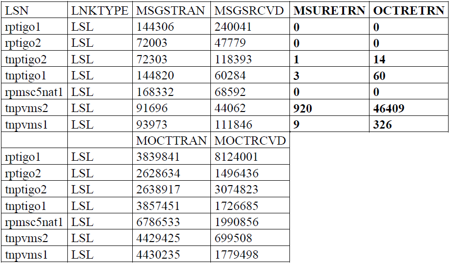 . Le même problème a été relevé sur les liens de signalisations de la plateforme VMS (Voice Mail Service) plus particulièrement les liens qui vont vers le STP du TNP. (Voir tableau 4).