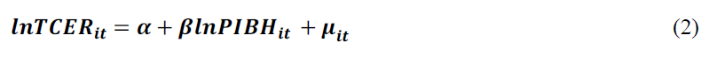 Le taux de change effectif réel est défini comme le rapport entre le taux de change nominal et la parité du pouvoir d’achat. Le modèle de taux de change effectif réel est le suivant :