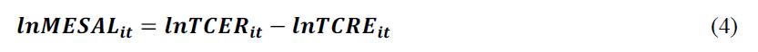 – Mésalignement (Mesal) : représente le mésalignement du taux de change effectif réel. Il est défini comme l’écart entre le TCER et sa valeur d’équilibre de long terme. Le mésalignement du taux de change, souvent lié à une surévaluation défavorable aux activités des biens échangeables, est ainsi largement évoqué dans les études de performances économiques et y est considéré comme néfaste (Edwards, 1989). Ainsi on attend un signe négatif du mésalignement sur la croissance.