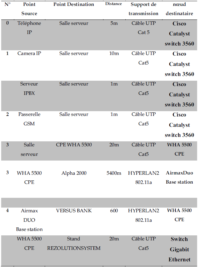 Ainsi nous savons eu pour les différents liens les caractéristiques suivantes: