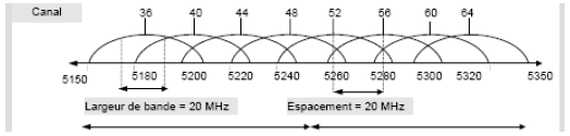 Les bandes de fréquence Qu’utiliseront nos services seront: celles allant de 5,150 à 5,350 GHZ réparties sur 8 Canaux non-chevauchant de 20MHZ chacun.