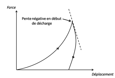 Ainsi un simple calcul du rapport du déplacement élastique obtenu à chargement maximal Fmax sur celui évalué à chargement partiel Fd, aboutit d’une manière précise à la profondeur résiduelle comme suit :
