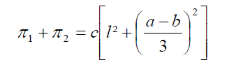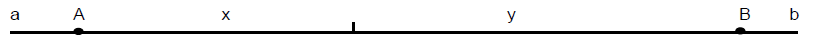 La figure 16 montre un segment de longueur l, où a représente la distance entre l’offreur A et l’extrémité gauche du segment, où b représente la distance entre l’offreur B et l’autre extrémité, x est la part de marché de A et y celle de B. Hotelling aboutit au résultat de dépendance des prix des offreurs :
