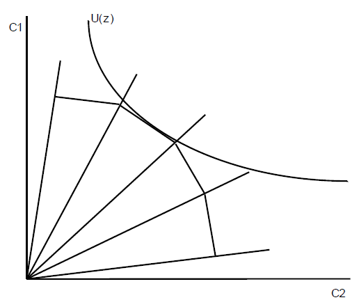 Chaque individu possède sa propre courbe d’indifférence, U(z), qui représente la même utilité – en tout point – donnée par les caractéristiques proposées. La courbe d’indifférence ne donne plus le choix entre deux biens mais entre des caractéristiques.
