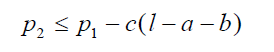 Si on suppose maintenant que A est fixe, on voit que B se placera de telle façon que son profit p2 soit maximum. Dans ce cas-là, B devra faire de telle sorte que b soit le plus élevé possible. Il devra donc se tenir aussi proche de A que possible en faisant attention de se trouver du côté lui procurant la plus grande part de marché. Une autre analyse faite par Hotelling(63) passe par la considération du profit total des deux offreurs :