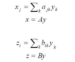 Dans cette relation, Lancaster appelle la matrice B la “technologie de consommation”(74), en raison de son rôle d’outil d’aide à la décision dans le choix de consommation d’un agent(75). Cette relation est en fait une transformation d’un espace G (biens) vers un espace C (caractéristiques) afin de pouvoir effectuer une comparaison entre des données d’espaces différents(76).