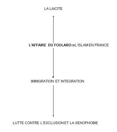 L ’affaire du foulard, comme nous avons pu le signaler dans le chapitre précèdent, n ’est pas qu ’un débat sur la laïcité . L’affaire du voile c ’est aussi la question de l ’immigration , de l’intégration , de l’exclusion ….