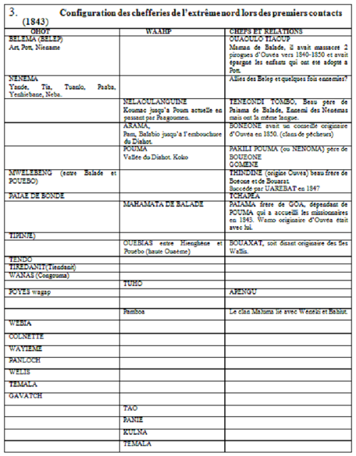 « Le district nord dépend de la chefferie de POUMA, qui s’est déplacée depuis les alluvions de la basse vallée du Diahot à Ouégoa pour s’enclaver à Balade sur les terres arides et calcaires d’une partie extrême de son espace foncier. Les 80% restants constituent encore des domaines privés européens » (223).