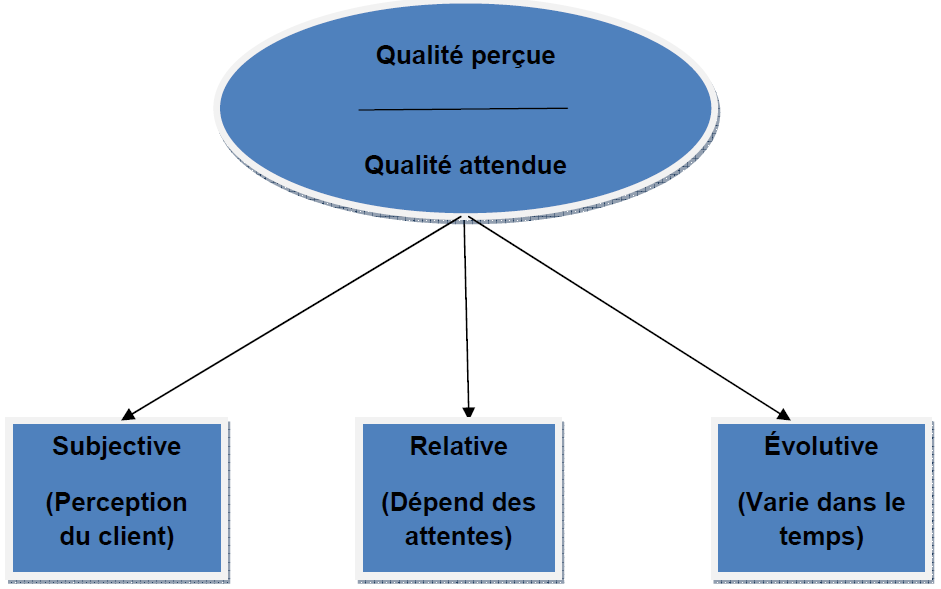 – la qualité est jugée en référence à un standard d’excellence, ce qui n’est pas forcément le cas de la satisfaction (qui peut être jugée en référence aux attentes ou à des jugements d’équité par exemple).