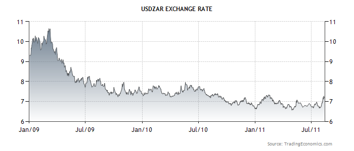 About to become the regional hub in Africa, South Africa is populated of around 50 million and the “Rand” (ZAR), its currency. The Rand’s exchange rate on the market the 8/09/2011 showed: 1 ZAR = $ 0.139680 or € 0.09938854 or £ 0.0871120; $1=7.15923 ZAR; or 1 £ = 11.4795 ZAR; 1€ = 10.0618 ZAR.