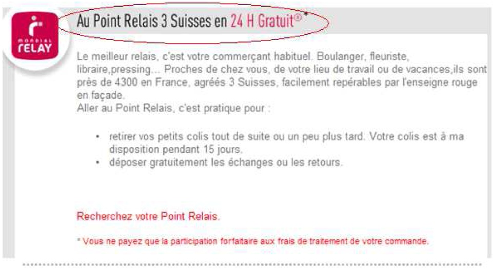 Figure 24. Prix de la livraison en point relais sur le site 3 Suisses.fr en septembre 2011