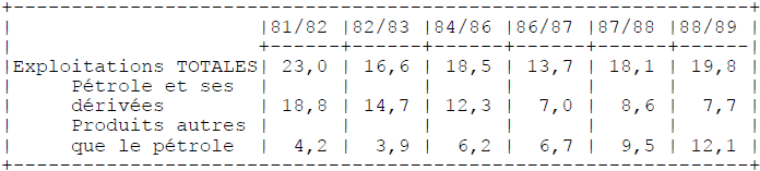 Deuxièmement, et c’est là un facteur plus important, les recettes en provenance des exportations de pétrole sont tombées de 18,8 milliards de dollars entre les années 1981-1982 à 14,7 milliards de dollars entre les années 1982-1983. Le tableau suivant est souffisamment édifiant à ce sujet.