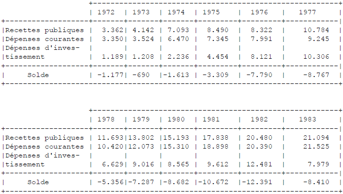 C’est pourquoi, à cause des effets négatifs qu’exercent les chocs extérieurs sur les recettes publiques dont la principale composante (les impôts indirects sur les relations internationales) subi sans merci les fluctuations inattendues; le déficit du secteur public se développe très fortement dans la plupart des PVD non membres de l’OPEP.