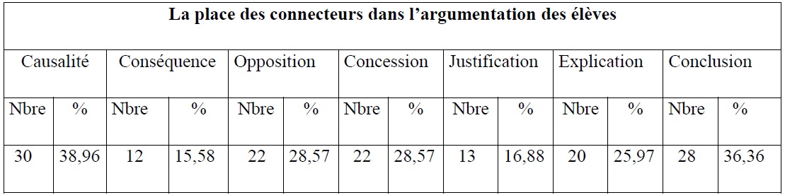 Afin d’appuyer leurs arguments, vingt (20) élèves ont employé les connecteurs