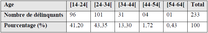 L’âge des criminels est présenté dans le tableau ci-dessous.