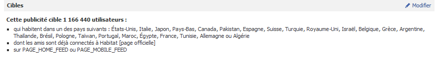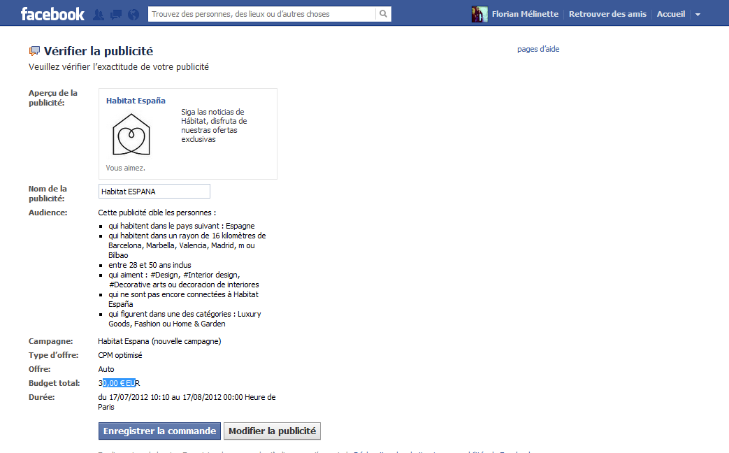 Exemple d’une publicité sur la page Facebook Habitat Espagne :