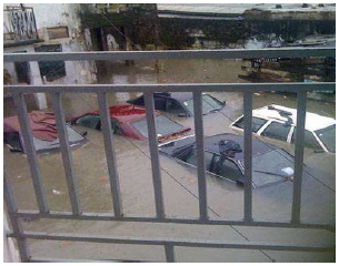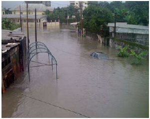 Les photos 5 et 6 présentent les dommages observés suite aux inondations. D’une part nous avons la pollution des puits par les eaux souillées et les déchets solides, (Photo 5) et d’autre part des véhicules et des habitations littéralement immergées (Photo 6). La stagnation de ces eaux peut parfois durer plusieurs jours.