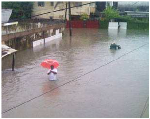 Photo 7 : Chaussée totalement inondée au quartier Bonapriso © www.bonaberi.com, 09/2009.