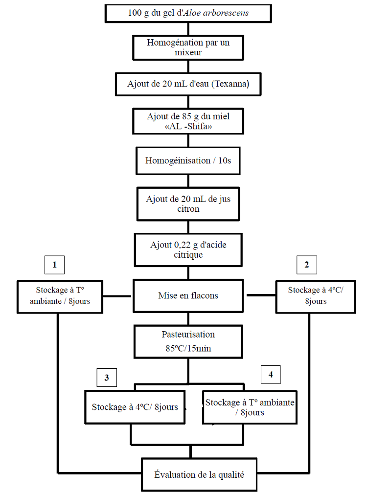 Figure 05 : Diagramme de fabrication de la boisson médicinale «Arbojus» à base du gel d’Aloe arborescens et du miel «AL -Shifa»