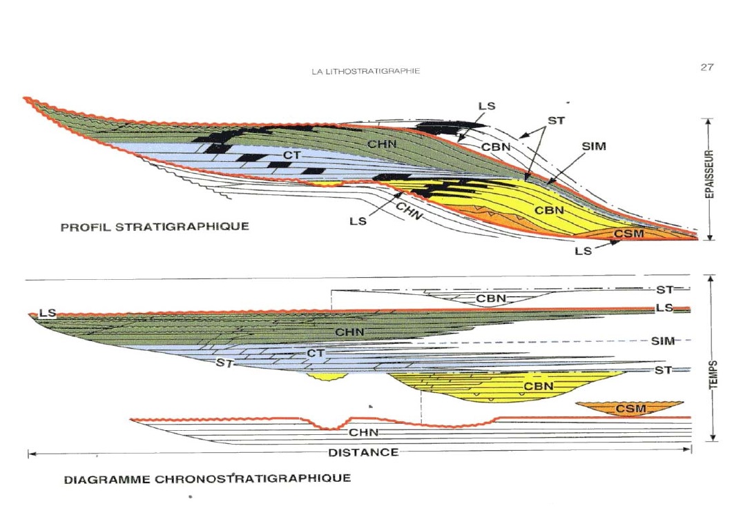 • Stratigraphie séquentielle : « La stratigraphie séquentielle est l’étude des relations des roches dans un cadre chronostratigraphique, constituées de strates répétitives génétiquement liées, limitées par des surfaces d’érosion ou de non-dépôt ou par leur continuité en concordance » (Posamentier et al, 1988).