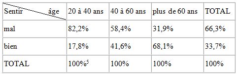 Tableau 7: la sensation personnelle lors d’une vague de chaleur selon les classes d’âge.