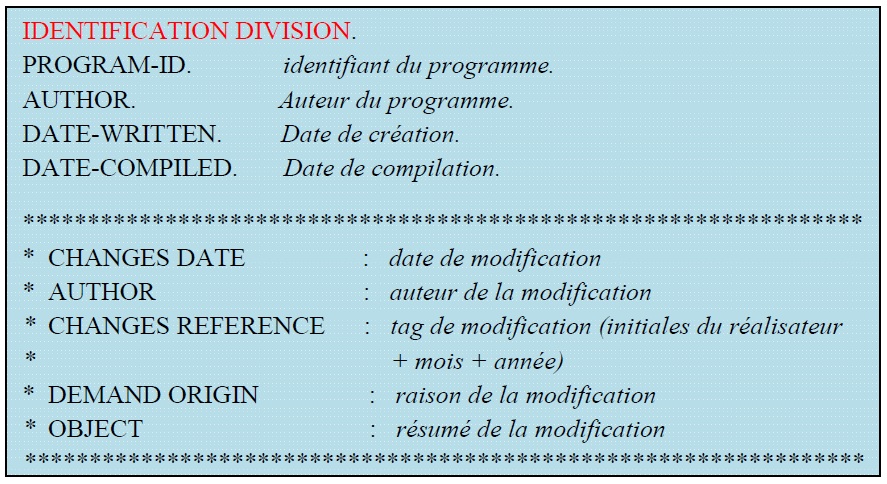 permettent d’identifier le programme, son auteur, sa date de création et en commentaires la