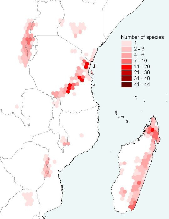 Figure 4 : Répartition des espèces d’amphibiens menacées à Madagascar