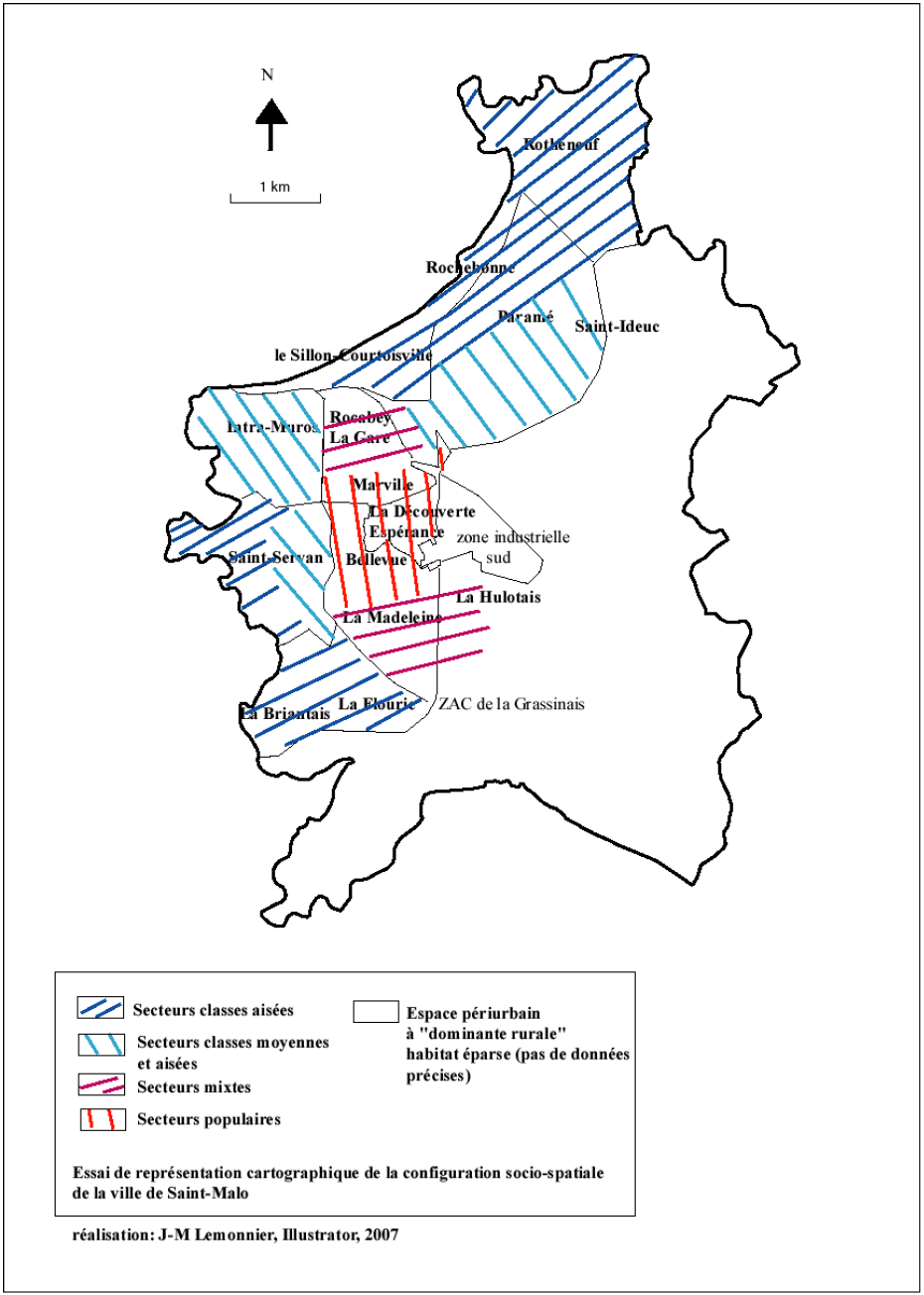 Sans vouloir corréler exagérément chaque zone d’habitat, chaque quartier, avec une catégorie sociale précise, nous pouvons dégager à grands traits quelques tendances lourdes concernant la configuration socio-spatiale de la ville de Saint-Malo.