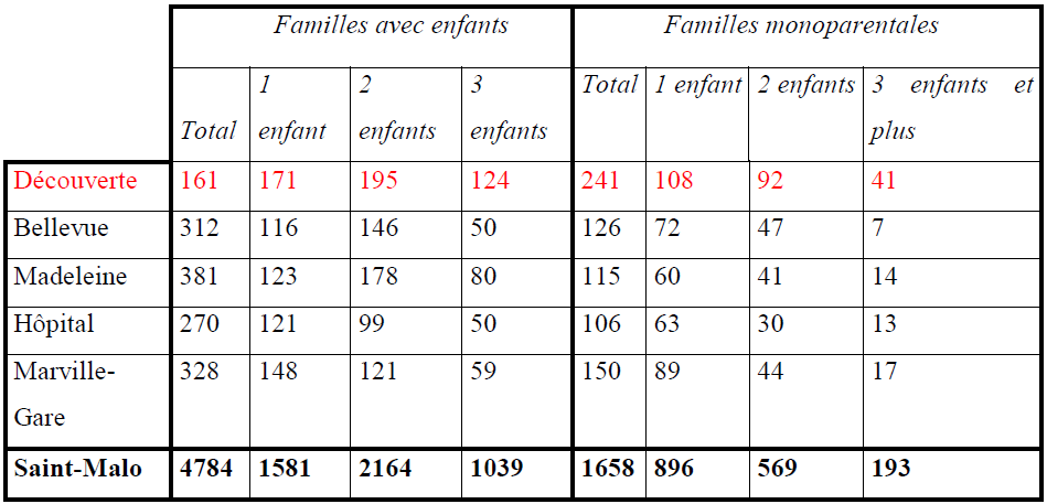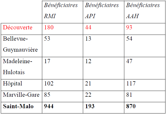 Un fait avéré, quant à la répartition des catégories sociales, est que celles-ci sont inégalement réparties sur l’espace urbain de Saint-Malo (PLU, rapport de présentation, 2006).