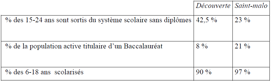 En outre, cette comparaison est insuffisante. Une comparaison avec un « quartier » de la commune présentant a priori des similitudes au niveau démographique, social et économique serait envisageable pour voir si réellement le quartier de la Découverte est celui qui présente la situation la plus « marginale ». Aussi, une étude comparative avec un secteur de la ville présentant la situation la plus contrastée par rapport à la Découverte serait encore sans doute plus pertinente…