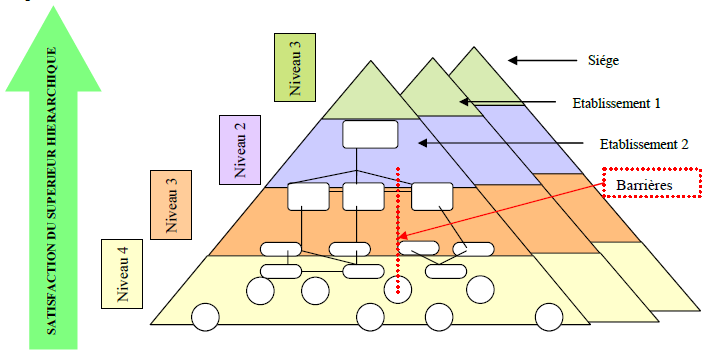 Cette situation crée un antagonisme entre les performances à atteindre pour l’entreprise et les performances individuelles : en cas de dysfonctionnement, on rejette la faute sur le service voisin. Avant d’entamer une action, chacun examine l’intérêt individuel qu’il peut en retirer, et seulement ensuite on s’accorde sur l’intérêt pour l’entreprise. On en vient à refuser les responsabilités et ou les prise de risques.
