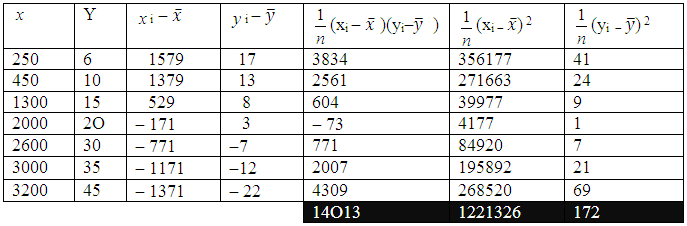 – Calculons les variances de x, de y et la covariance de x y (voir tableau ci-après)
