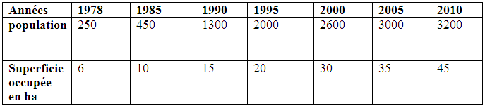 La croissance démographique de Youpwe aura pour corollaire l’extension spatiale de ce quartier. L’on pourra ainsi voir la superficie du bâti passer de 45 hectares à 100 hectares et plupart à 130 hectares. En effet il possible de déterminer facilement la superficie de l’espace occupée à Youpwe à partir de notre équation de régression qui est de y = 0,01x + 4,7.