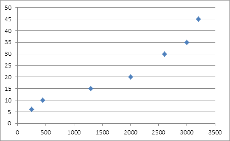 Par ailleurs en représentant le nuage de point des deux variables étudiées précédemment on se rend compte très rapidement que les valeurs s’organisent dans le graphique selon une tendance très marquée. On s’aperçoit que le graphique représente une courbe et qu’en plus les points ne sont pas dispersés. Cela témoigne d’une corrélation entre les deux variables. (Voir nuage de points ci-après).