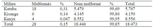 Le taux le plus bas des malformations notifiées est enregistré à la maternité de l’HGR Kenya