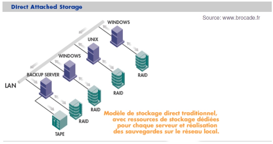 direct ou DAS (Direct Attached Storage) (figure 2). Comme le montre la figure 2, chaque disque ou