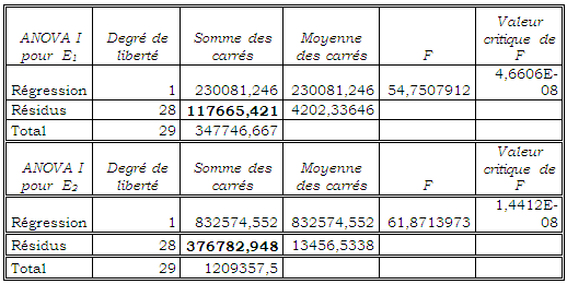 Source : Nos Calculs sur Ms Excel dans l’Utilitaire d’Analyse-Régression sur base d’une scission du modèle général.