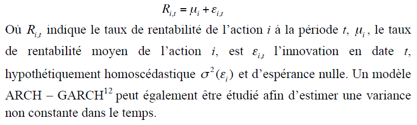 Attachée à l’évaluation du modèle de moyenne, l’évolution des taux de rentabilité de l’action i est formulée par :