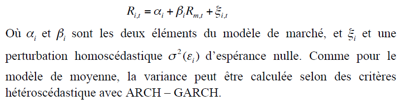 de rentabilité Rm,t de l’indice de référence, mesuré à partir de l’action i. Ce modèle s’inscrit donc dans le cadre d’une mesure de sensibilité du titre
