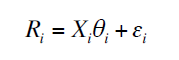 Pour ce faire, nous pouvons estimer l’ensemble des paramètres liés à chaque modèle à l’aide d’une représentation matricielle de la période N. A ce titre, nous pouvons consulter les études de John Y. Campbell, Andrew W. Lo et Craig MacKinlay, publiées en 1997(14). Deux composantes sont à calculer. Soit Ri, le vecteur composer des N taux de rentabilité et Xi :